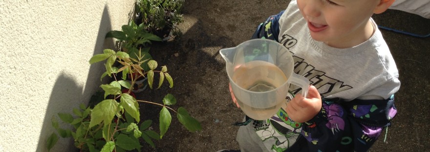 Recently the Toddler children helped look after the plants before they were taken to the nursery allotment, making sure to keep them watered when going in the garden for playtime.